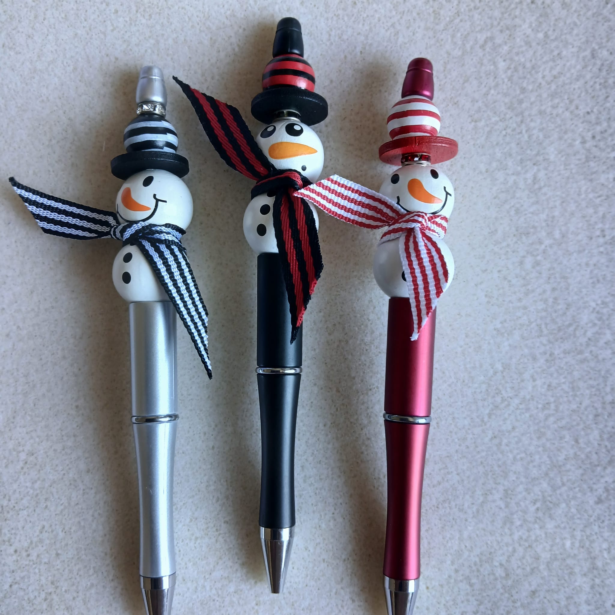 Kuličková pera s ozdobou Sněhuláka s různobarevnými ozdůbkami. Můžete si vybrat ze škály barev těchto propisek, např. stříbrná, zlatá, červená, zelená, černá.
