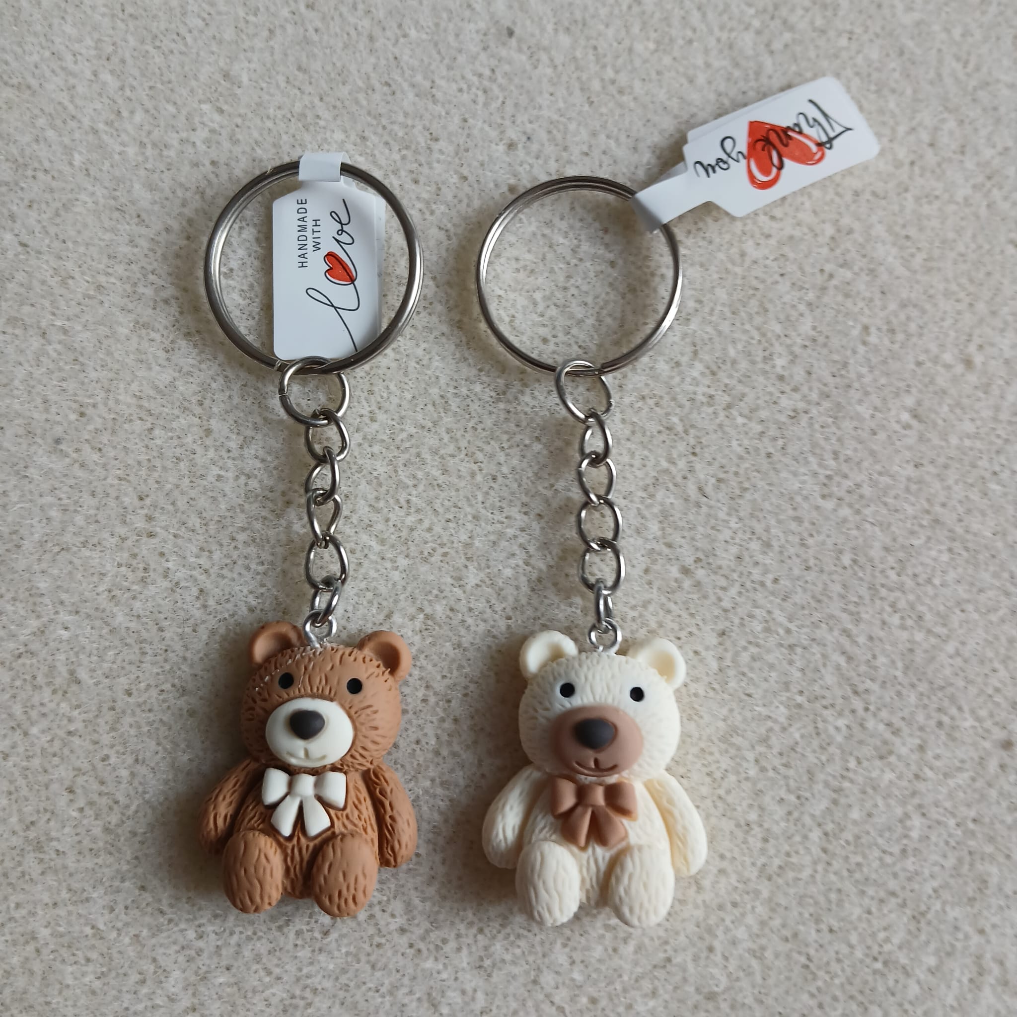 Medvídci jsou ve dvou barvách, hnědý a bílý se stuhou pod krkem. Zavěšen na řetízku s kroužkem. Vyrobeny ve 2D z pryskyřice pro výrobu šperků. Přívěsek, ozdoba, lze zavěsit na tašku, kabelku, batoh, klíče, apod. Vhodné jak pro děti, tak jako dárek pro přátele.